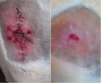 After surgery to remove a mass on Bella’s hip, the wound re-opened and got infected. The owners were given antibiotics and told that healing would take months. But they applied PowerHeal®, and the wound healed completely within 2 weeks.