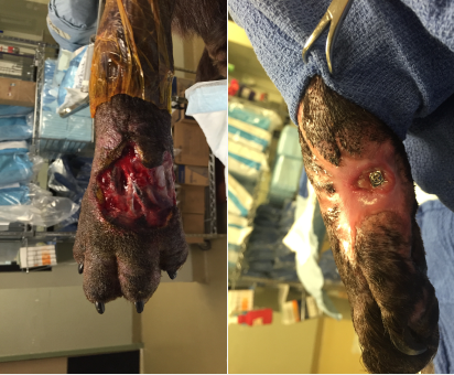 Jackson’s foot was broken when run over by a golf cart. After prolonged complications with healing, the veterinarian applied PowerHeal® bandages. The wound then decreased in size significantly by 4 days and was fully healed by 2 months.