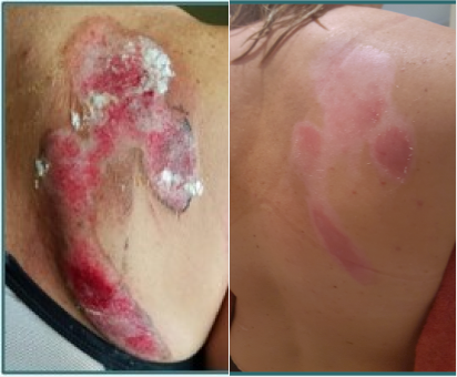 Fourteen days after a Mohs procedure, the incision site on Kent’s back was painful and infected. He applied PowerHeal® bandages, and his wound was fully closed and infection-free within 21 days.