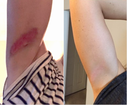 Alex sustained a chafing injury under her arm after running a marathon. She treated the burned area with PowerHeal® bandages. After 4 days, her wound was fully healed.