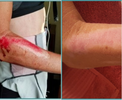 A road biking accident caused large road rash on Emma’s forearm. She used PowerHeal® bandages to treat the abrasion, and full healing was achieved within 3 weeks.