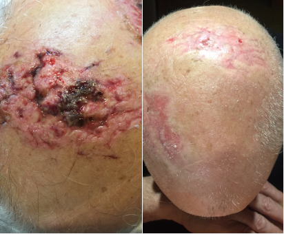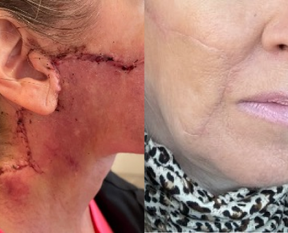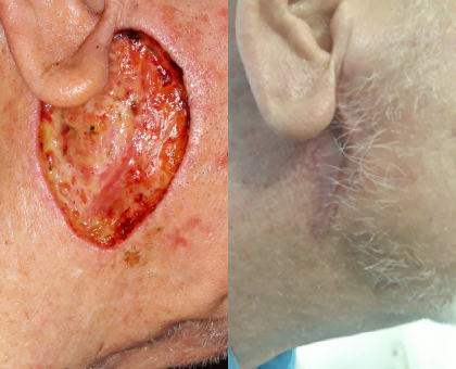 Bernard had a Mohs procedure and was left with a large wound under his ear. He applied PowerHeal® bandages to the wound shortly after surgery. After about 4 months, Bernard’s wound was healed.
