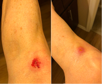 Steph crashed while cycling and suffered multiple large abrasions. Time of injury photos are not available, but PowerHeal® treatment was initiated promptly. Steph was very pleased with the clean, healthy look of her healed wounds.